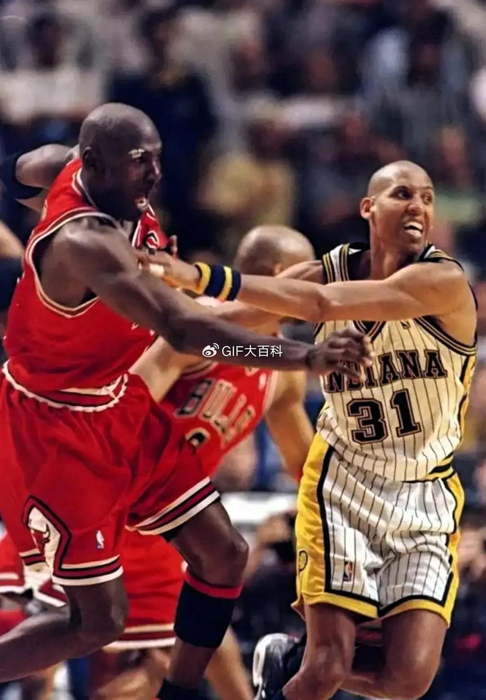 最后时刻,米勒推开乔丹(没错,那会儿乔丹在打棒球),命中三分,然后对着尼克斯替补席大喊。